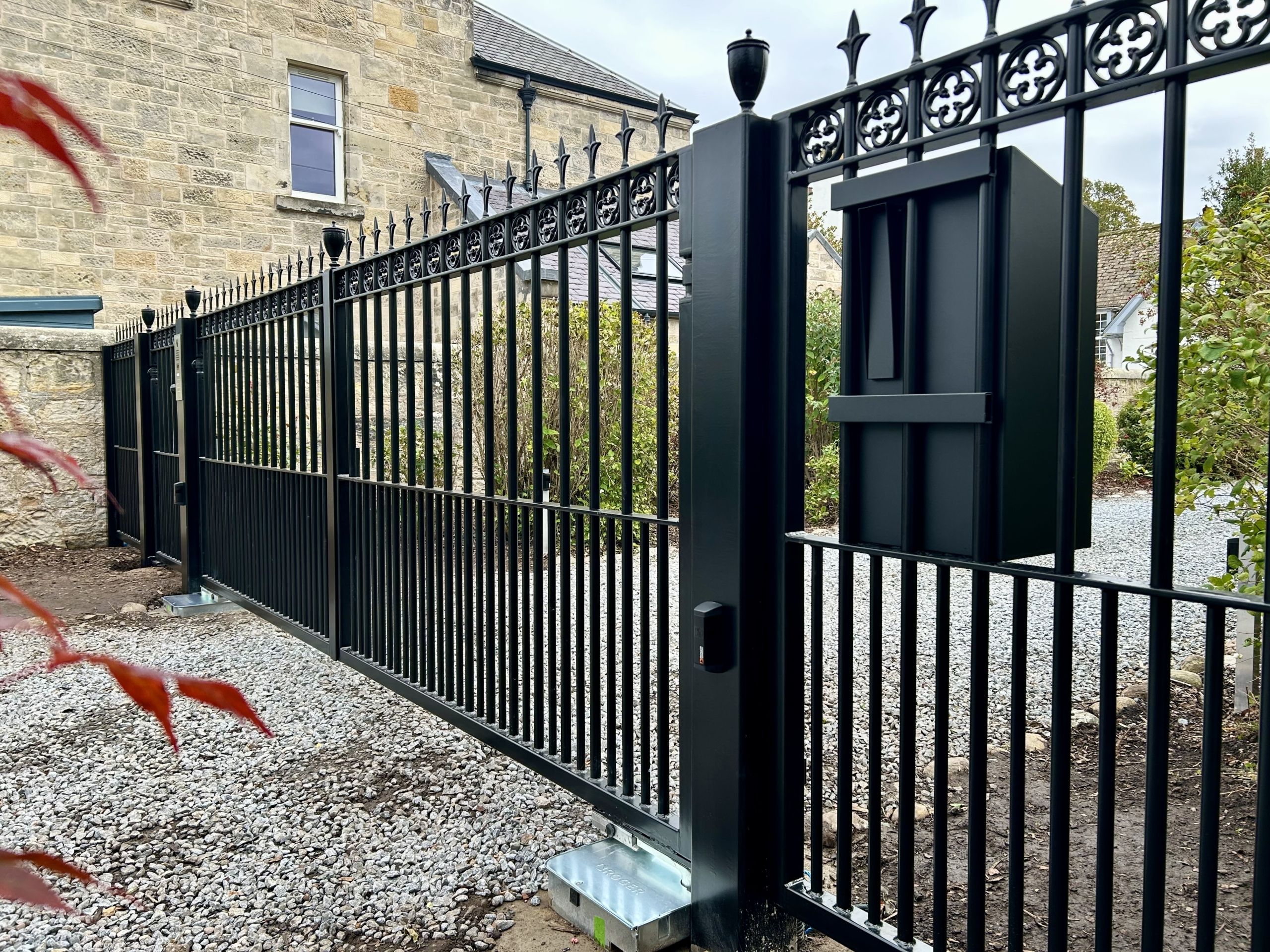 December 2025 - Another project completed in St Andrews by team AES Scotland: stunning automatic metal driveway gates paired with matching pedestrian gate and railings for a secure, modern entrance. Driveway still to be completed. ⠀⠀⠀⠀⠀⠀
